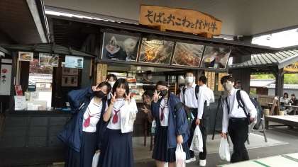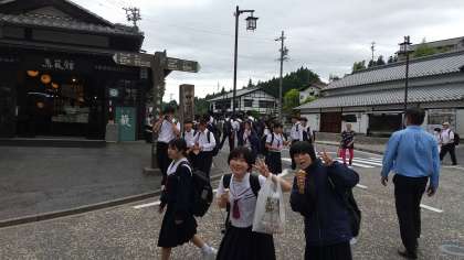 馬籠散策から続々と帰ってきました。買い物や食べ歩きを楽しみました。