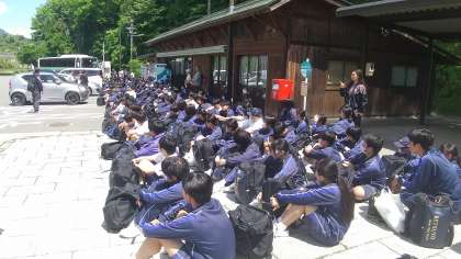 退村式後バスに乗車、「道の駅中条に」集合しました。半日ぶりの全員集合です。この後体験別にバスに乗車します