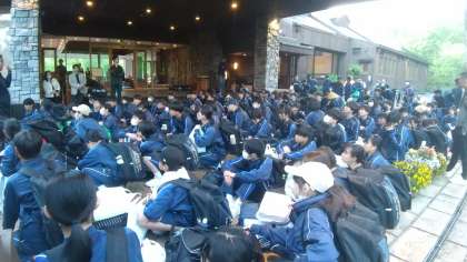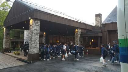 買い物タイムも終わり、ホテルシェラリゾート白馬に到着しました。「オシャンティー!」という声が上がりました。