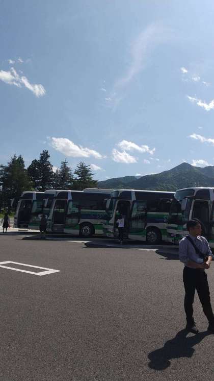 トイレ休憩が終わると元気回復、バスで交換した新しいCDから流れる曲に合わせて歌声が聞こえます。
