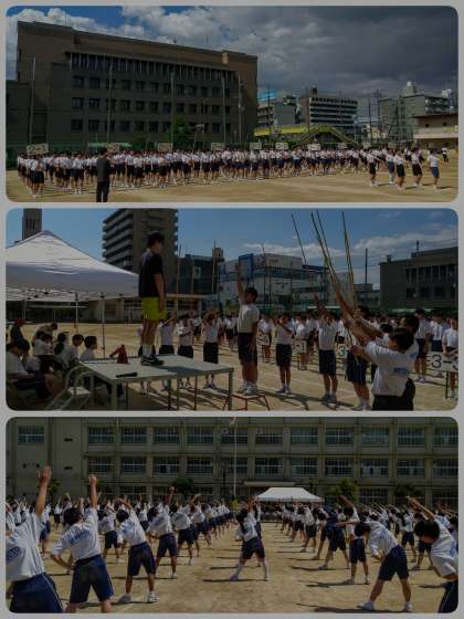 行進練習、ラジオ体操、開閉会の練習など暑い中、一生懸命に取り組んでいました(^o^)