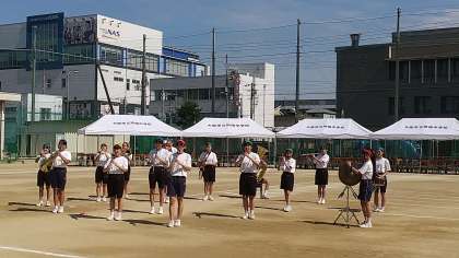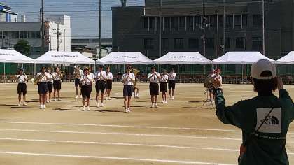 6月7日(金)、晴天下、体育大会が行われました。吹奏楽部による演奏、放送部による放送で入場が始まりました。