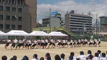 2年生学年種目「綱引き」です。パワーで勝負!まず2組と4組です。