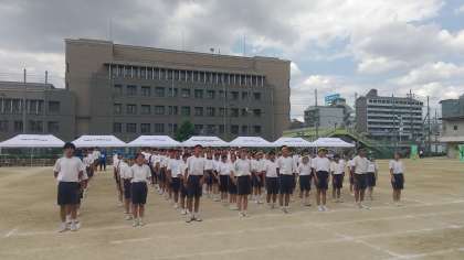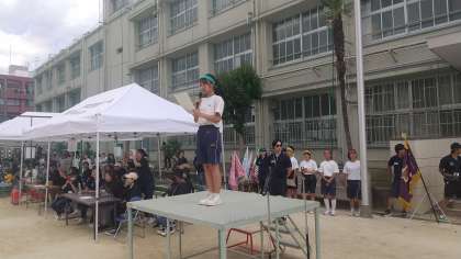 全員リレーが終わったあと、3年生から保護者、先生にメッセージがありました。そして成績発表を待ちます。