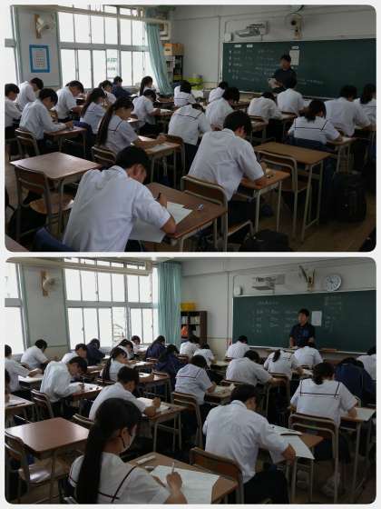 本日は、国語・社会・保健体育のテストを受けています。