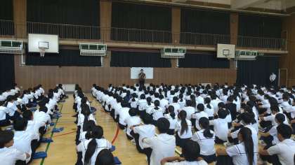 平賀先生からは、1学期の振り返りをしっかりし、規則正しい生活をすること、SNSの使い方、ルールを守ること(法律など)について話がありました。