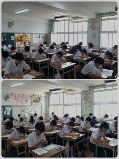 本日、3年生はチャレンジテストに臨んでいます。夏休みに勉強した成果を発揮し、最後まで諦めずに頑張っています(^o^)