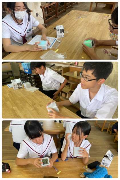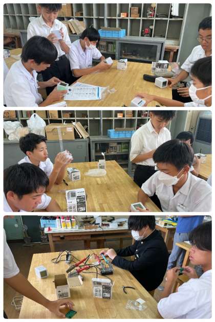 1学期から溶接・組み立てに取り組み、本時は電池をいれるところまできました。