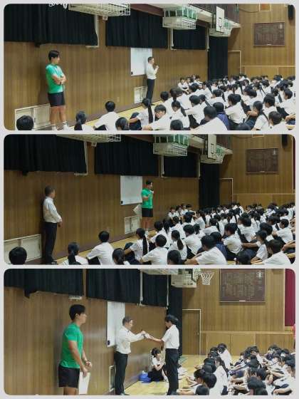 本日の集会では、校長先生から今週に控えている中間テストに向けてしっかり取り組むことや来週3年生を対象としたGTECに向けても頑張っていくこと、平賀先生からは心の天気の入力を習慣化しようと話がありました。