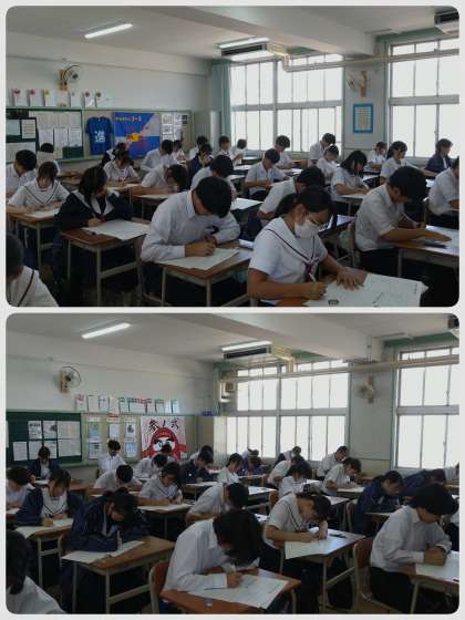 本日から中間テストが実施されました。自習の時間を経て、今日は英語と理科に取り組んでいます。