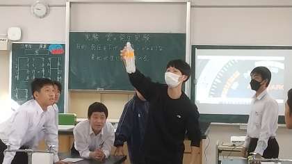 その後、雲の発生実験、スペシャル実験として、ロケット発射実験を行いました。ペットボトルロケットが飛んでいく様子、ロケット内に雲が発生している様子が見られました!