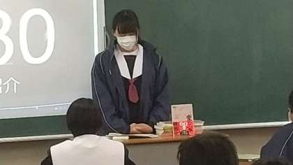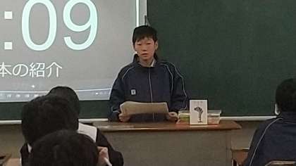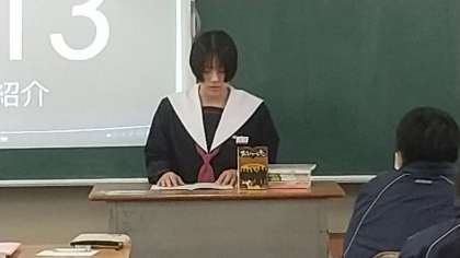 11月19日(火)1限の1年生国語授業の様子です。「読書活動 ビブリオバトル」決勝が行われました。発表時間は5分間、質問は2分間のルールです。