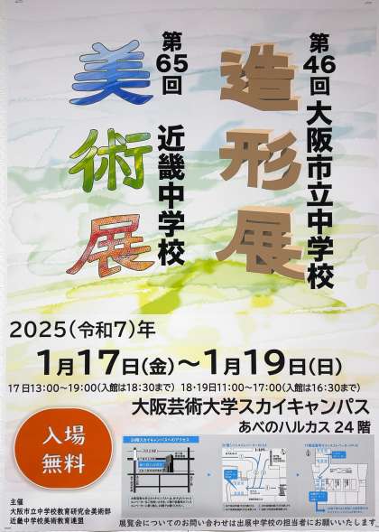 明日からあべのハルカス24階にて大阪市立中学校造形展、近畿中学校美術展が開催されます。