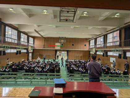 3月13日(木)、卒業式予行の様子です。1組が入場しました。