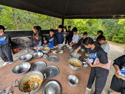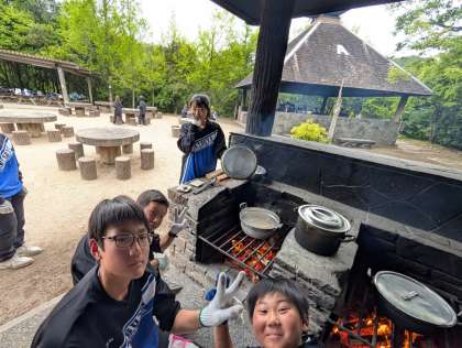 完成した班も出てきました。11時現在とうとう雨が降ってきました。