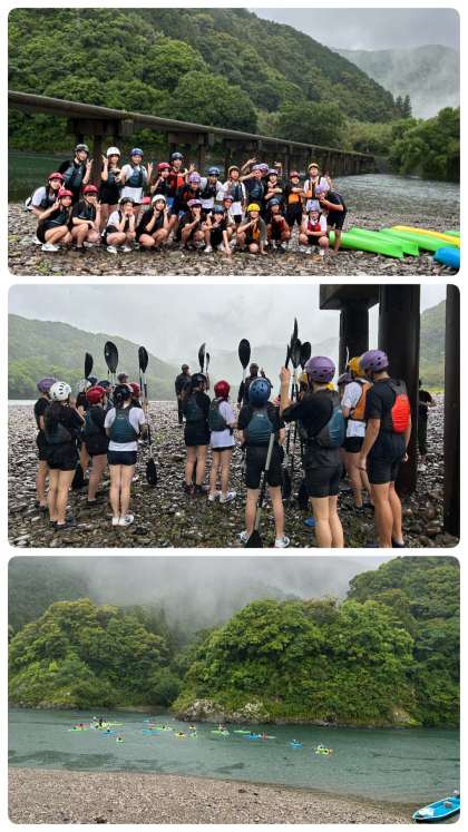 カヌー体験の様子です。 レクチャーを受けてから、川下りに出発しました。