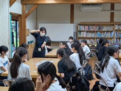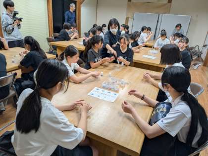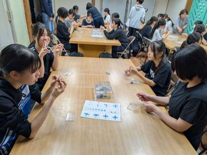 屋形船の後、バスで再び移動、次は「ビーズトンボストラップづくり」です。