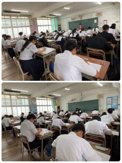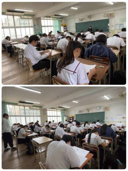 3年生になって初めての定期テストです。一人ひとり真剣に最後まで諦めずに解いています。
