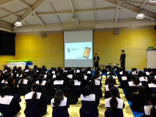 本日、兵庫県立大学の学生さんで、ソーシャルメディア研究会、兵庫県警学生サイバー防犯リーダーの方にお越しいただき、携帯電話やスマートフォンでのトラブルなどについてご講演いただきました。