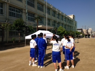 3年体育委員は、早朝より、第70回体育大会3年記念演技の全体練習のために、準備をしてくれています。