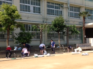 本日、体育施設開放委員会と利用者の方々が、運動場周りの溝掃除、雑草整理をしてくださいました。