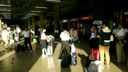 さて、7時20分の集合完了に向け、3年生が新大阪駅に集まって来ました。