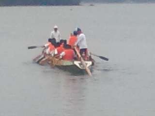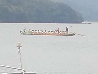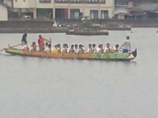 さあ、海に漕ぎ出しました!みんなのタイミングが揃わないと、うまく進みませんし、スピードも出ません。息の合ったチームワークがカギになります。