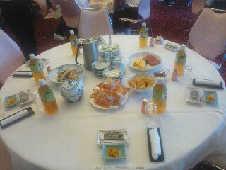 さあ、朝食の時間です。乗り物での長時間の移動やペーロン大会で多少疲れた生徒もいたようですが、今朝はみんな元気に朝食会場に集合してきたようです。