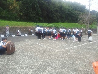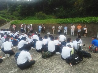 お世話になる民泊先の方々が、みんなの前に立ってくれています。