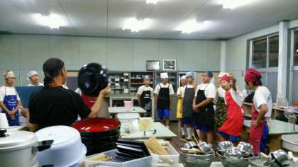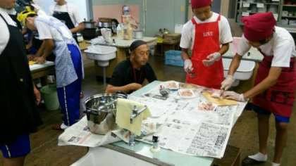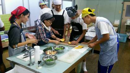 体験が始まりました。男の子たちが、慣れない手つきで料理をしていますね。美味しく完成せましょう。