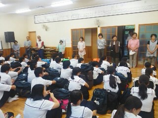 「ほんなもん体験」と昼食が終わりみんな集合してきました。こちらは田代地区の離村式の様子です。一緒に過ごした時間は丸一日もありませんでしたが、別れは名残惜しいですね。