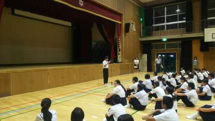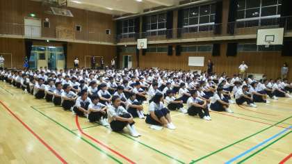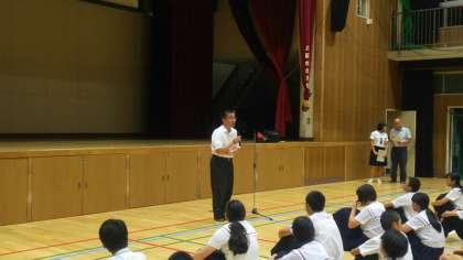 帰校式の様子です。修学旅行委員からの話、教頭先生からの話です。