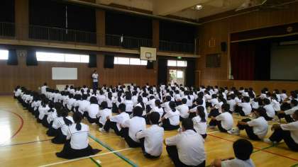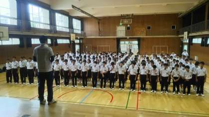 さて、水曜日は1年生定例の学年集会の日です。先週は宿題テストがあり、行われませんでしたので2週間ぶりとなります。本日は、1年生も合唱コンクールが近いこともあり、合唱コンクールの時の並び方を確認していきました。
