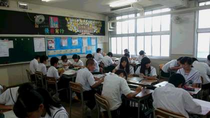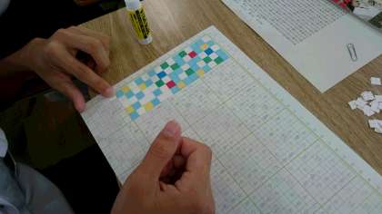 合唱コンクールを終えた3年生はそのあと教室に戻り、文化祭で展示するモザイクアート作品の製作にとりかかっていました。
