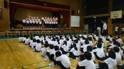 1年生の発表は、先日の合唱コンクールで上位入賞の1組と5組がその時に歌った自由曲をそれぞれ歌います。
