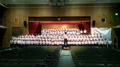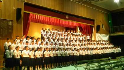 1年生の全体合唱は「栄光の架橋」。1年生も2年生に負けず、元気のあるところを見せていました。