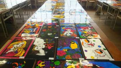 美術部の作品と美術の授業の作品ステンドグラスです。