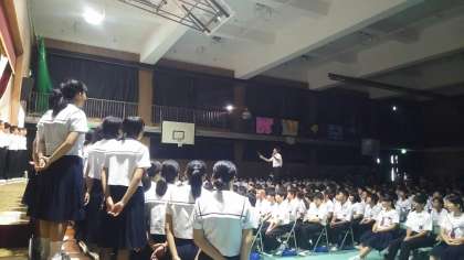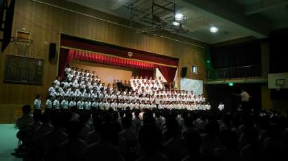2年生全体合唱「夏の日の贈りもの」です。他学年より人数が少ないですが、迫力のある歌声を披露してくれました。