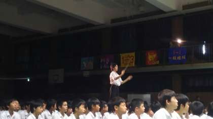 指揮者のタクト捌きに上級生からも思わず、「おおッ!」という声が。1年生の声をしっかりと引き出してくれました。