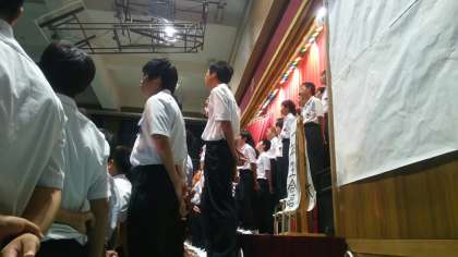1年生全体合唱「栄光の架橋」です。元気のよいところを見せてくれました。