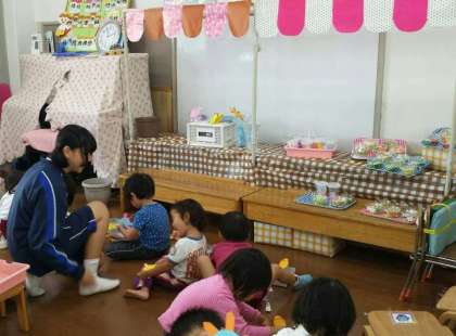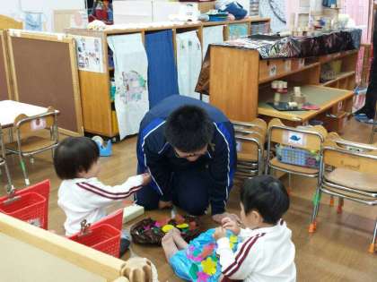 小さい子どもたちに囲まれて、みんな良い表情で取り組んでいました。