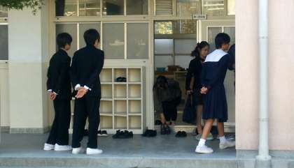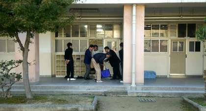 まずは、係生徒がゲストティーチャーを各教室までご案内。