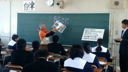 各学級を二班に分けて、それぞれの班でお二人ずつお話をしていただきました。