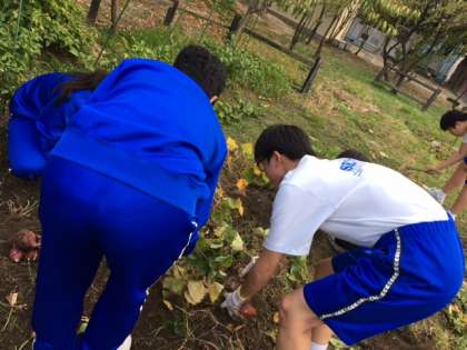 園芸部は今日サツマイモの収穫を行いました。