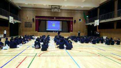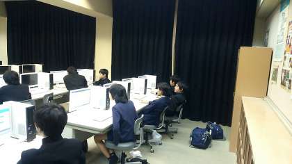 生活指導主事の話のあと、各活動場所に分かれました。パソコン部ではカレンダーをデザインしていました。