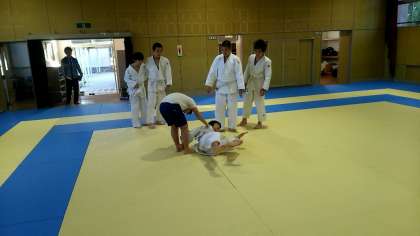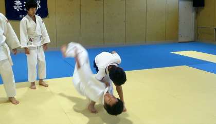 格技室では柔道部が活動していました。小学生の人たちも豪快に投げを決めていました。