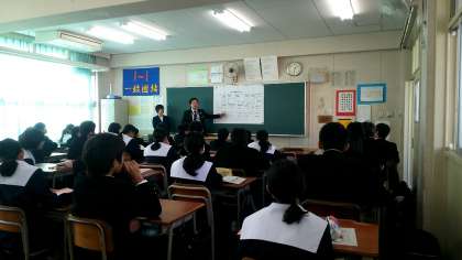 本日の5・6時間目、1年生はキャリア学習の2回目を行ないました。今回は企業の社員さんにも来ていただき、その社員さんが歩んできた人生の道のりについてのお話を聞きいた後、かなえたい将来の「自分像」を考えていきました。