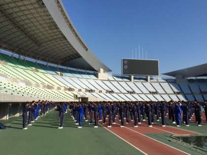 本日は自宅から会場の長居陸上競技場まで各自での集合でした。
