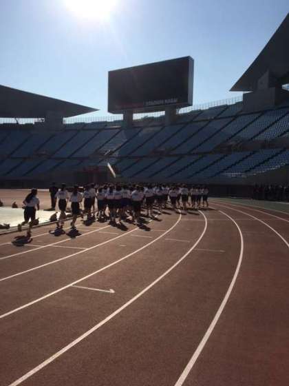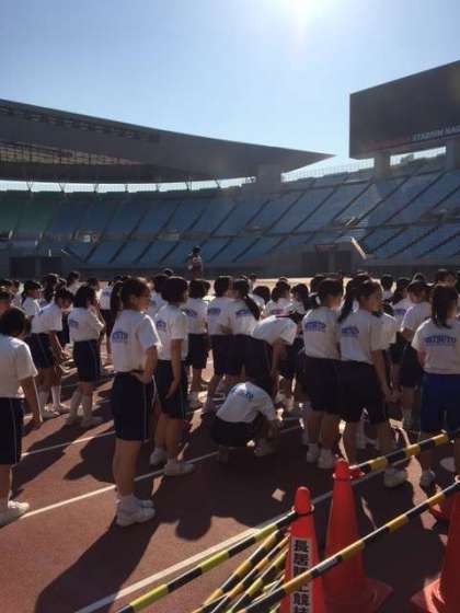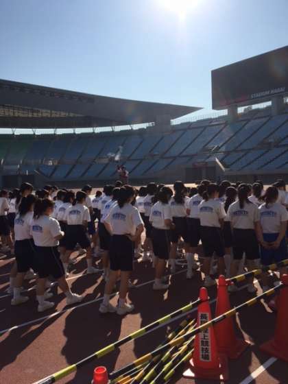 開会式、準備体操が終わると女子のマラソンの部がスタートです。
