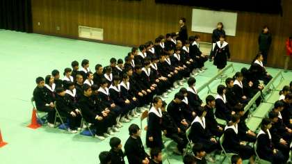 1・2年生の在校生代表として、生徒会本部役員と各クラス委員長(代理生徒を含む)が参加しました。